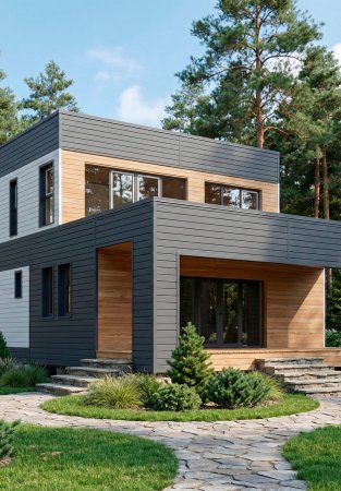 Отделка фасада на выбор: фасадные панели Альта-профиль, Docke, металлосайдинг Grand Line, фасадная плитка Hauberk, Свесы кровли- виниловые перфорированные софитные панели. Отделка цоколя панелями