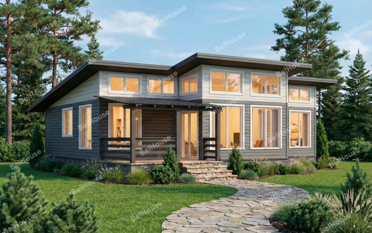 Каркасный дом, проект №268 Общая площадь 115 м2 Размер дома 10x11 м Комнаты 4 Спальни 3 Санузлы 2 от 3 335 000 ₽ от 28014 ₽/месяц в ипотеку с господдержкой Консультация Подробнее