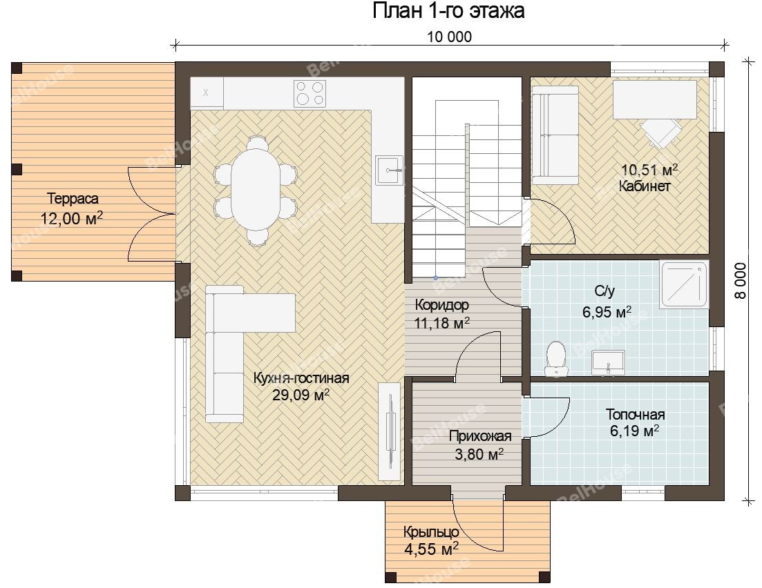 Каркасный барнхаус, проект №286 Общая площадь 153 м2 Размер дома 8x18 м Комнаты 3 Спальни 2 Санузлы 1 от 4 437 000 ₽ от 37271 ₽/месяц в ипотеку с господдержкой Консультация Подробнее