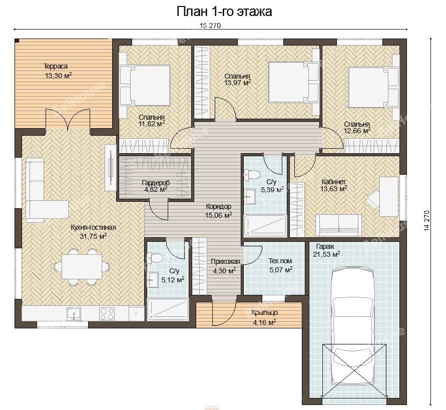 Каркасный дом, проект 315 Общая площадь 166 м2 Размер дома 16x11 м Комнаты 5 Спальни 4 Санузлы 3 от 4 814 000 ₽ от 40438 ₽/месяц в ипотеку с господдержкой Консультация Подробнее