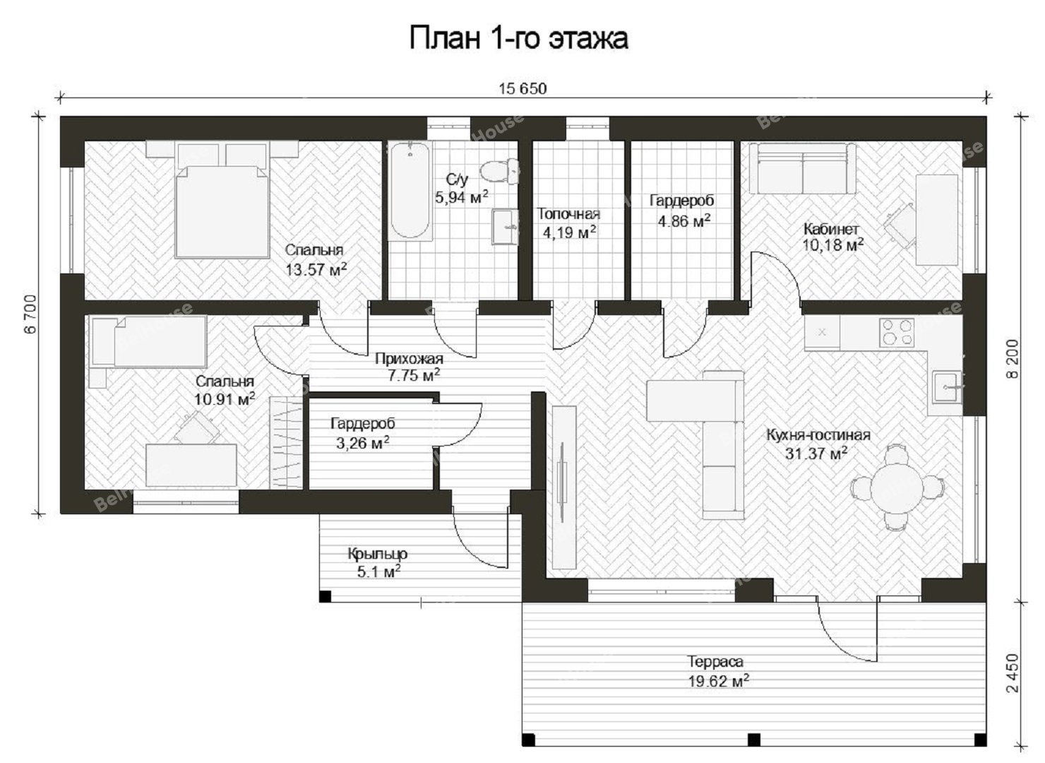Каркасный дом, проект №268 Общая площадь 115 м2 Размер дома 10x11 м Комнаты 4 Спальни 3 Санузлы 2 от 3 335 000 ₽ от 28014 ₽/месяц в ипотеку с господдержкой Консультация Подробнее