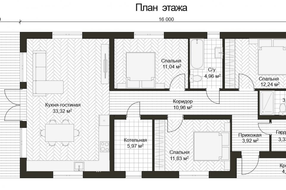 Каркасный барнхаус, проект №299 Общая площадь 131.6 м2 Размер дома 8x16 м Комнаты 2 Спальни 2 Санузлы 2 от 3 816 400 ₽ от 32058 ₽/месяц в ипотеку с господдержкой Консультация Подробнее