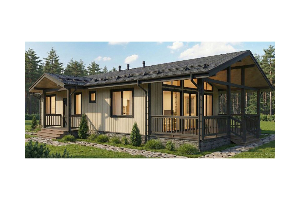 Каркасный дом, проект №359 Общая площадь 105 м2 Размер дома 15x8 м Комнаты 4 Спальни 3 Санузлы 2 от 3 045 000 ₽ от 25578 ₽/месяц в ипотеку с господдержкой Консультация Подробнее