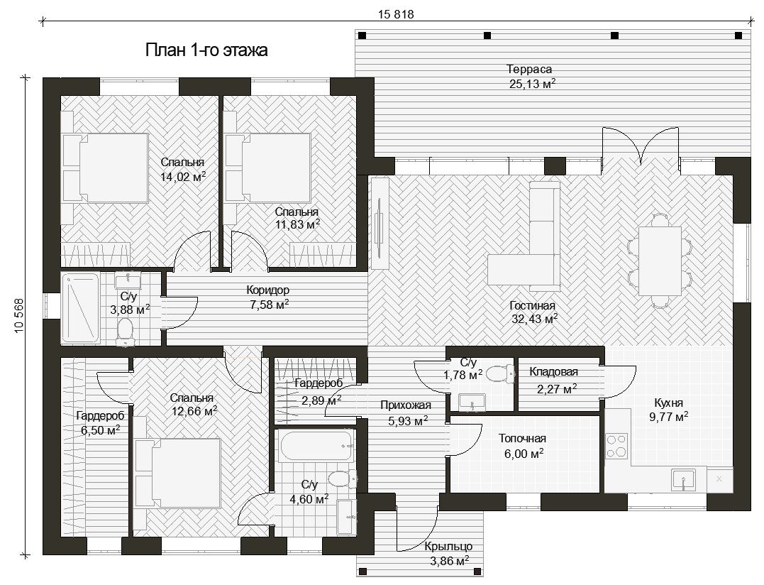 Стоимость без учёта крыльца, терассы, балкона, патио, навеса для автомобиля.