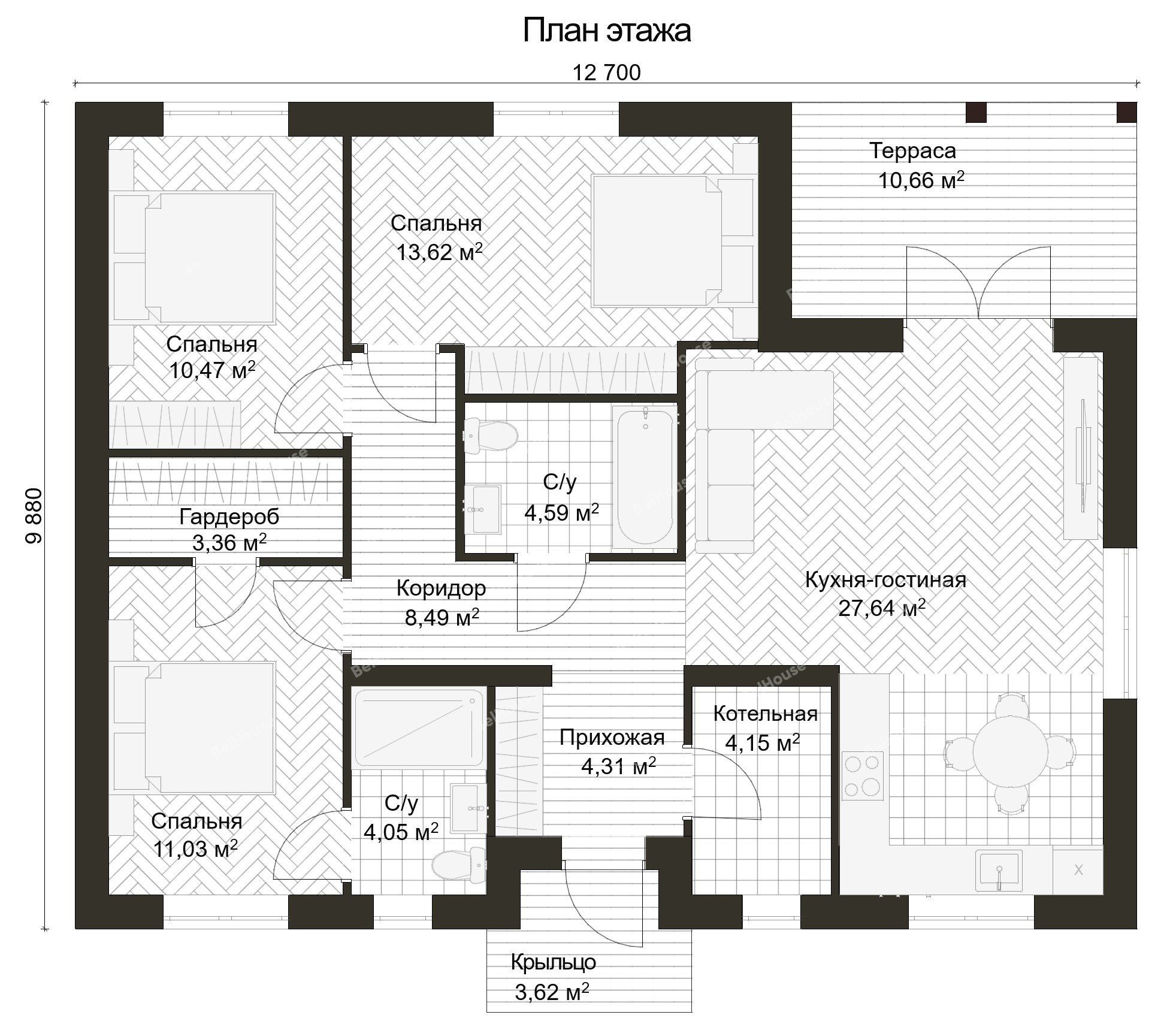 Стоимость без учёта крыльца, терассы, балкона, патио, навеса для автомобиля.
