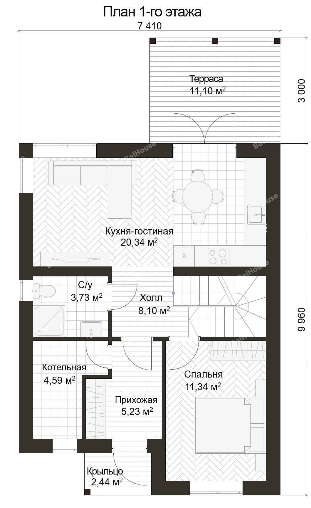 Стоимость без учёта крыльца, терассы, балкона, патио, навеса для автомобиля.