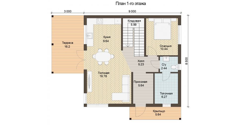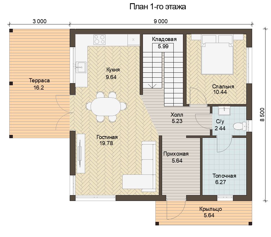 Устройство отопления: Монтаж водяного теплого пола на 1-м этаже: укладка теплоизоляционных матов, прокладка труб из сшитого полиэтилена, устройство коллекторной группы, полусухой бетонной стяжки, монтаж радиаторов на втором этаже (при наличии), установка котла газового или электрического, обвязка котельной, пуско-наладочные работы