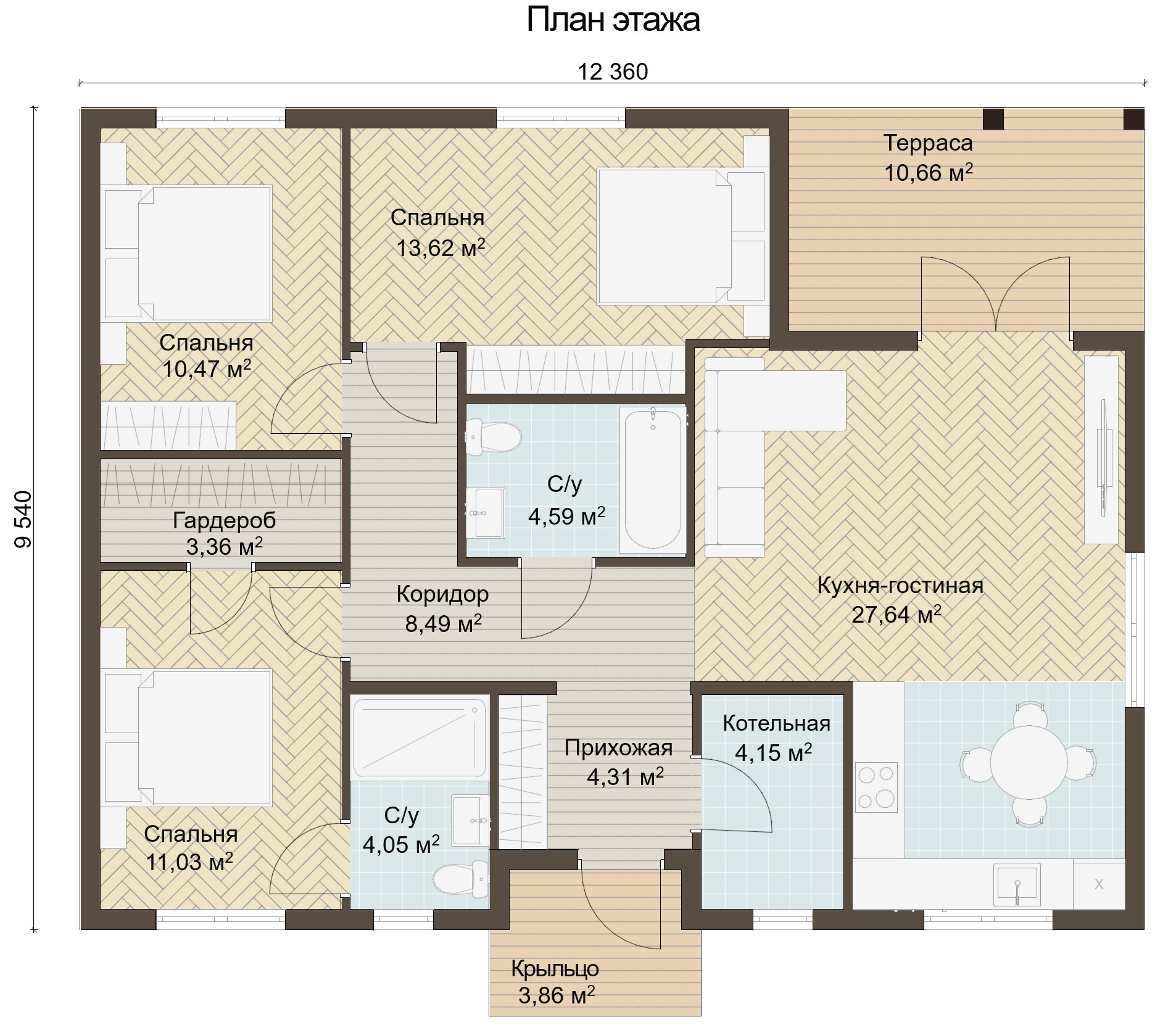 Стоимость без учёта крыльца, терассы, балкона, патио, навеса для автомобиля.