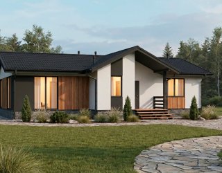 Отделка фасада на выбор: фасадные панели Альта-профиль, Docke, металлосайдинг Grand Line, фасадная плитка Hauberk, декоративная штукатурка Ceresit. Свесы кровли- виниловые перфорированные софитные панели. Отделка цоколя панелями