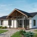 Просторный одноэтажный каркасный дом площадью 130 квадратных метров подойдет для средних загородных участков. Дом поделен на три просторные спальни, санузел, кухню-столовую, гостиную, холл, техническое помещение и кладовку. Также в доме имеется два выхода, и у каждого свое крыльцо.