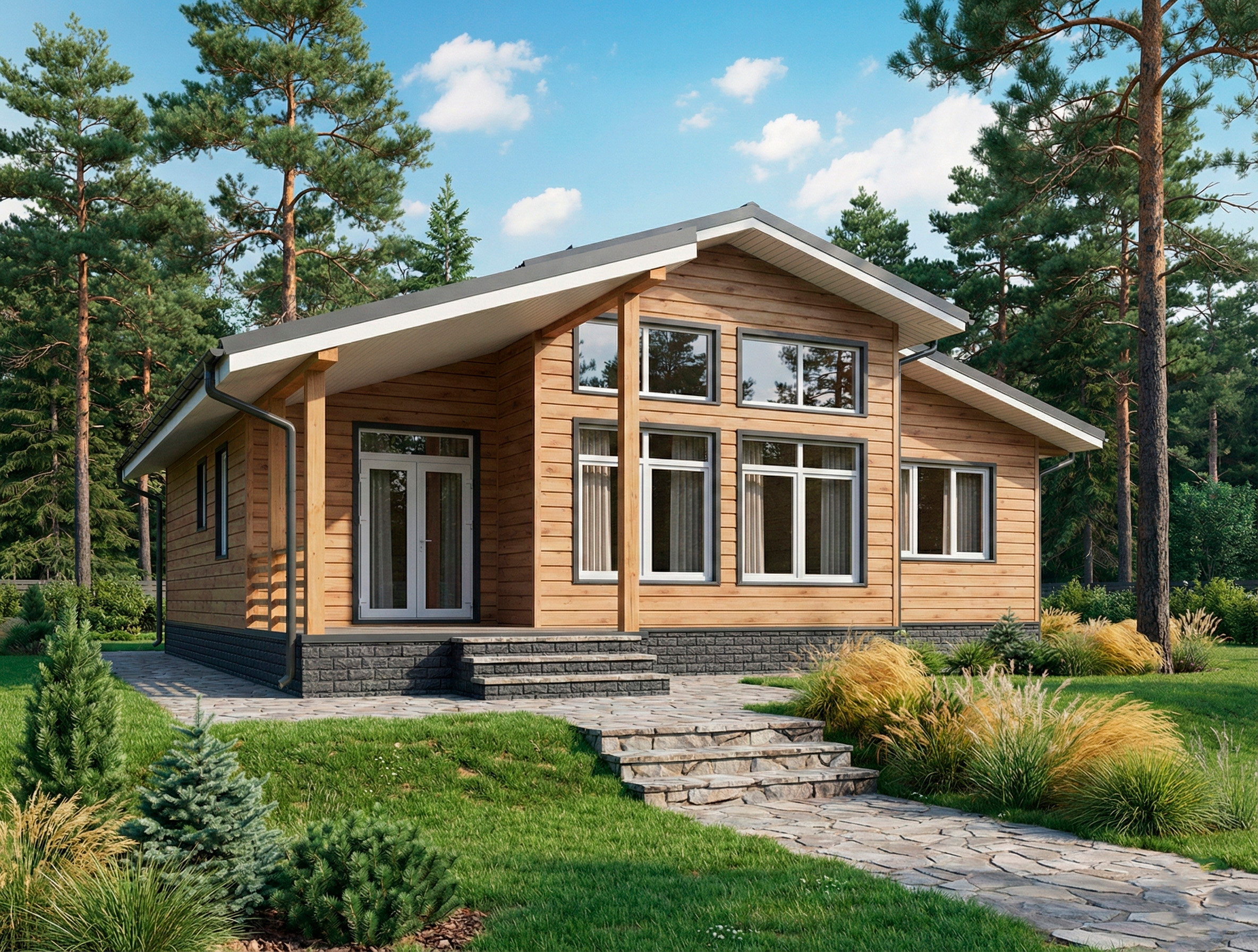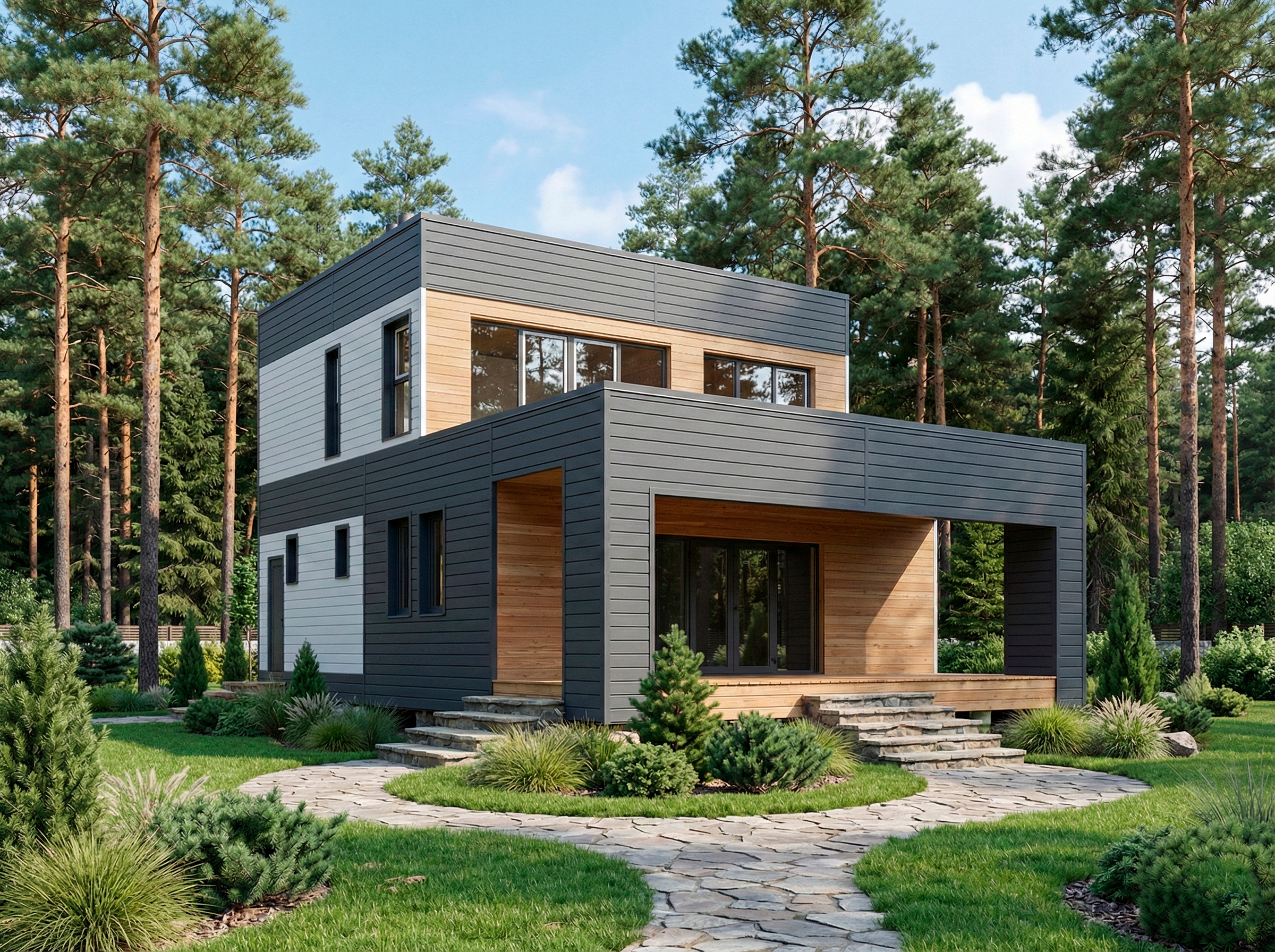 Простая геометрия профиля придает дому Скандинавский стиль. Современный дизайн достигается за счет прямых линий. Возможен горизонтальный и вертикальный монтаж.